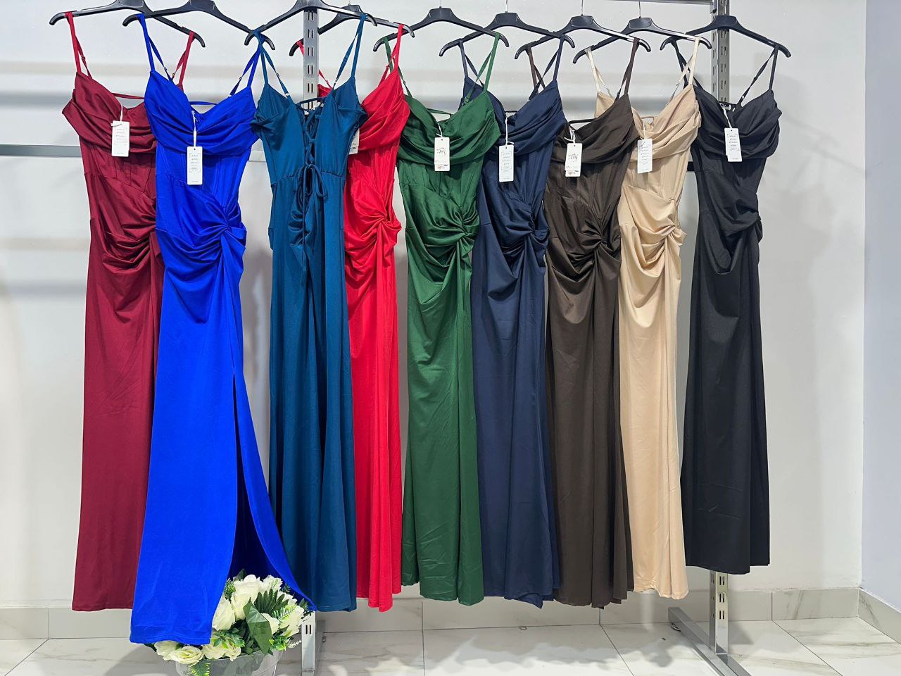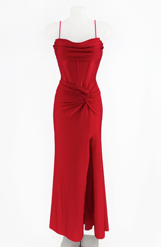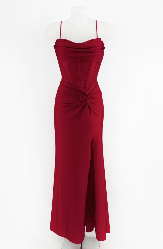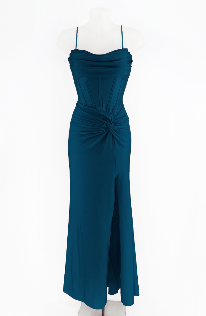 L'abito Stella unisce eleganza e sensualità grazie al suo design raffinato, caratterizzato da uno spacco laterale che valorizza la silhouette. Il dettaglio del nodino sul fianco aggiunge un tocco di originalità e grazia, rendendo questo capo ideale per occasioni formali dove si desidera distinguersi con stile e sobrietà. Realizzato con materiali di qualità, offre comfort senza rinunciare a una linea impeccabile.