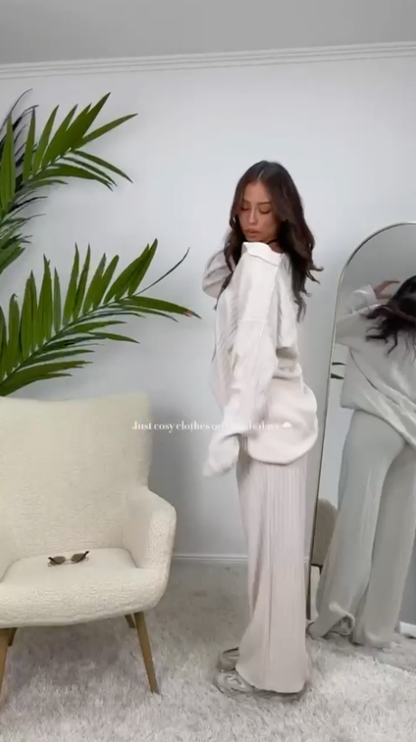 Completo elegante, comodo e alla moda con il suo fantastico pantalone e maglia, perfetto per l'inverno