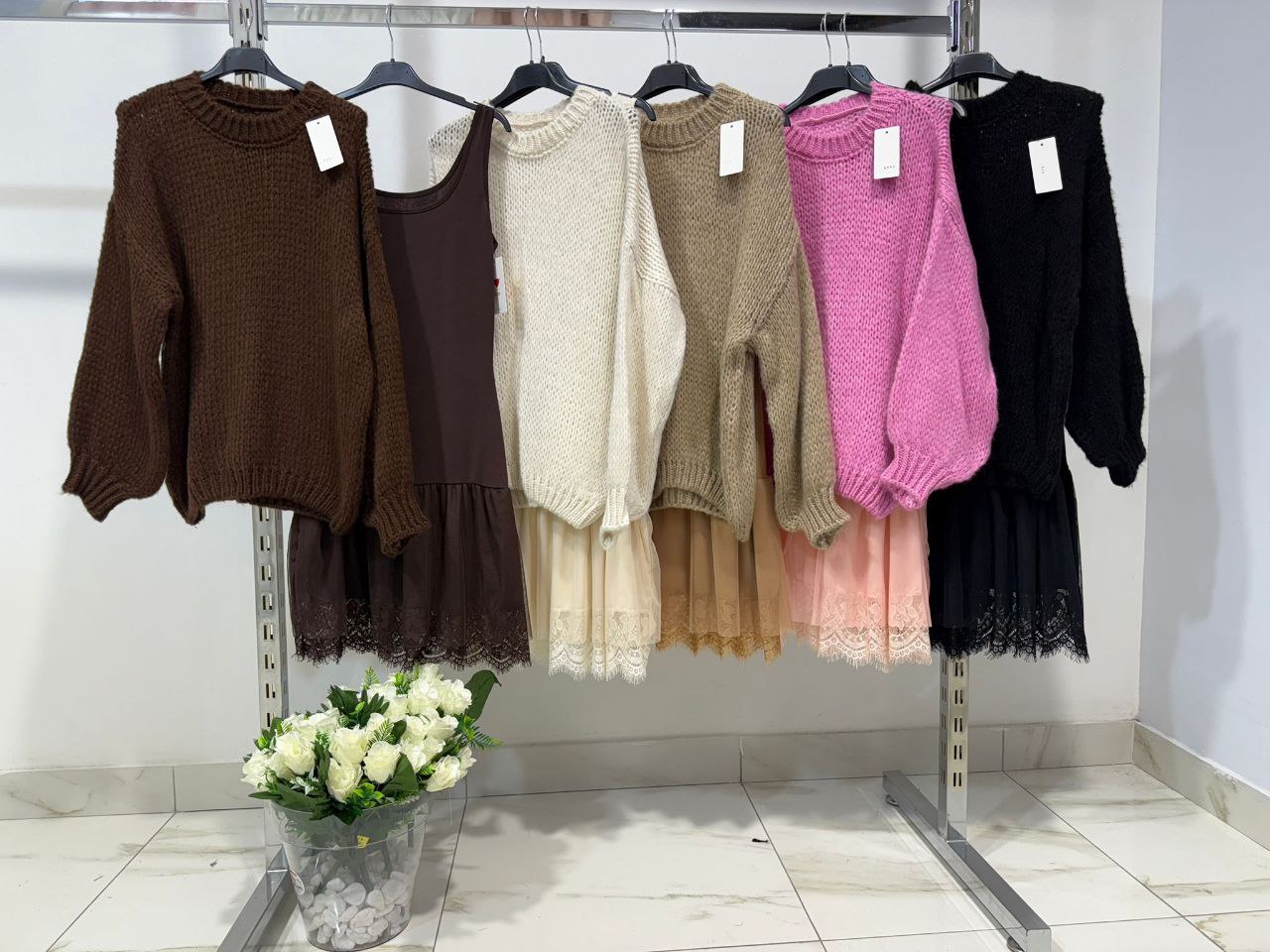 Il Completo Albana unisce eleganza e stile contemporaneo, combinando un vestito raffinato con un maglione dal taglio moderno. Ideale per chi cerca un look sofisticato ma versatile, questo completo offre comfort e classe in ogni occasione, perfetto per valorizzare la tua presenza con un tocco di charme discreto e attuale.