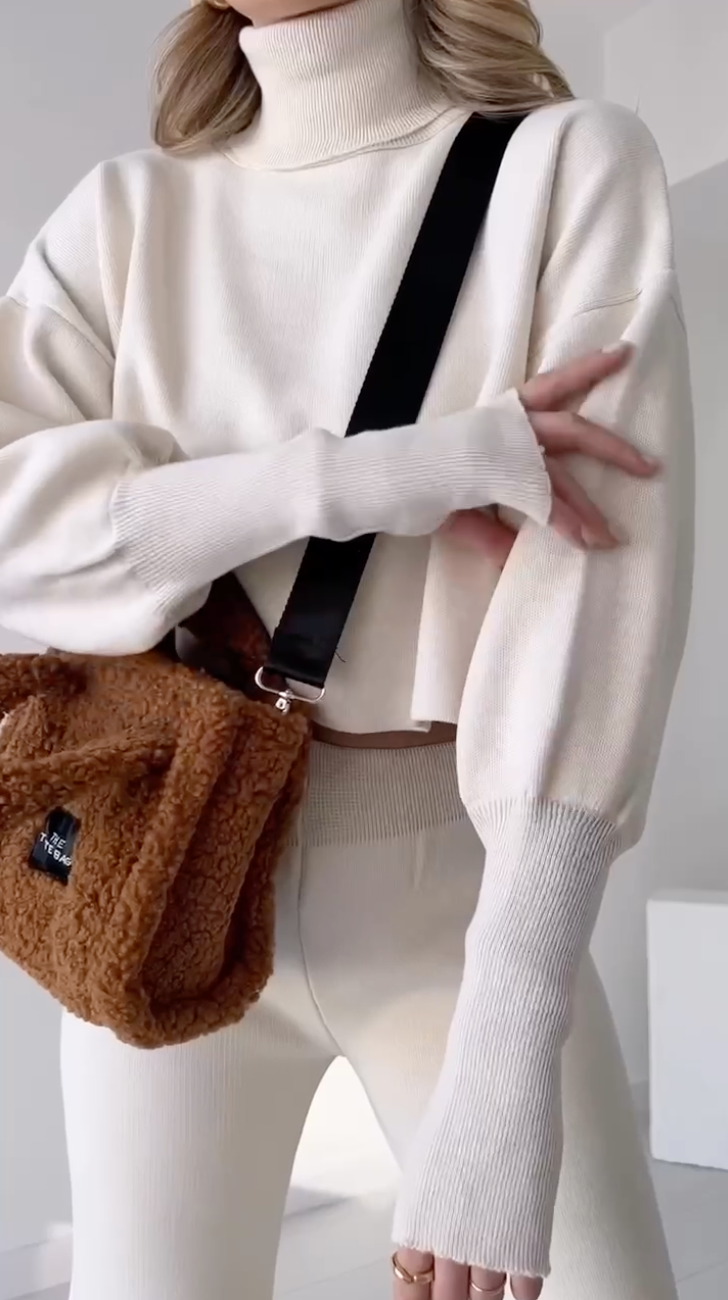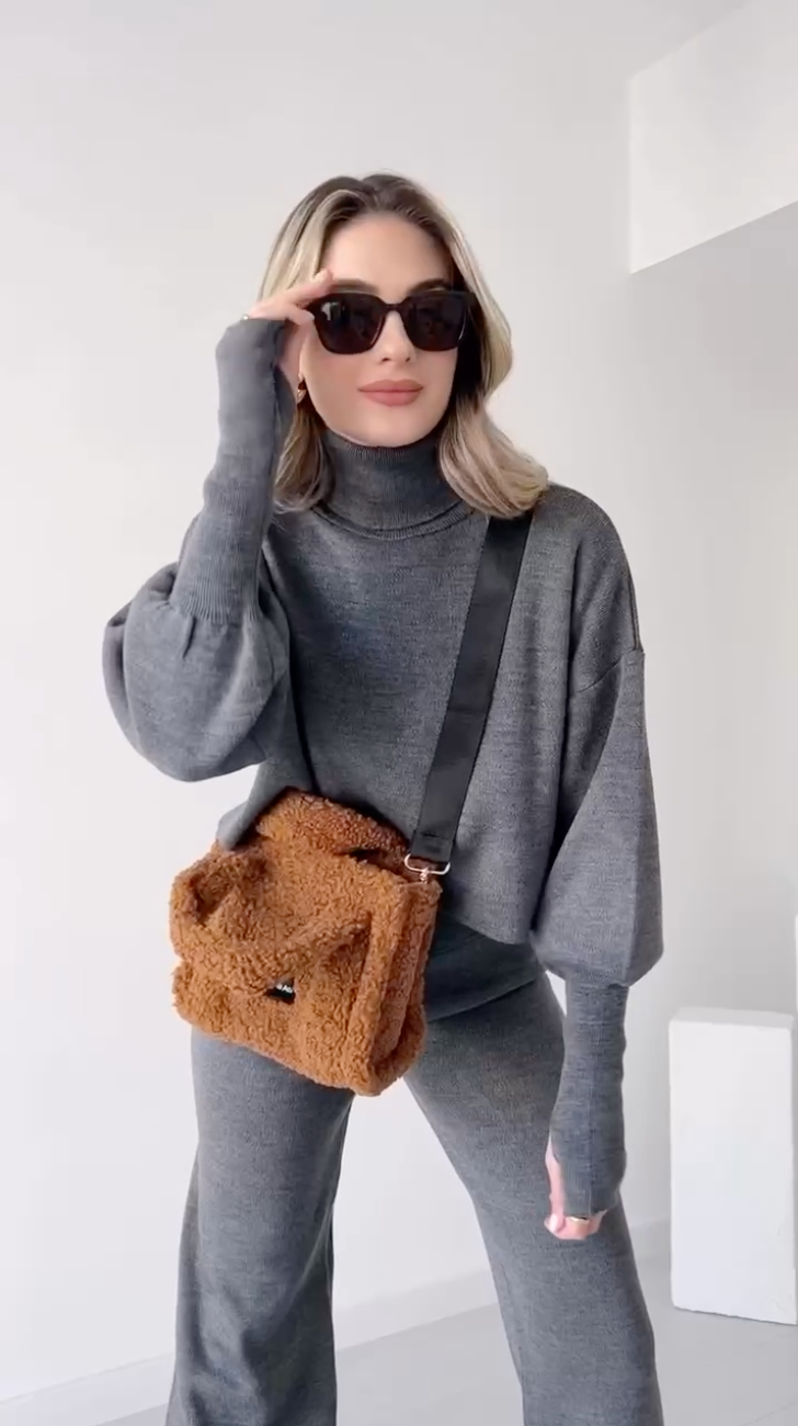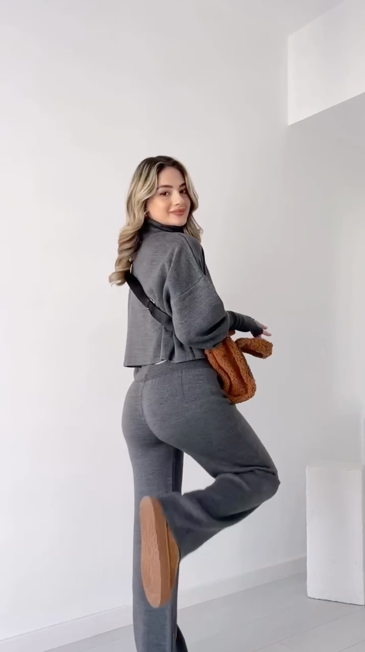 Il Completo Flora combina eleganza e versatilità, ideale per ogni occasione. Il pantalone dal taglio raffinato si abbina perfettamente ai maglioncini dotati di polsini, che aggiungono un tocco di cura e comfort. Una scelta sofisticata per chi desidera un look curato senza rinunciare alla praticità.