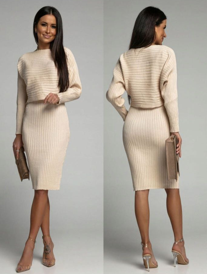 Il Completo Jemma unisce eleganza e comfort in un outfit raffinato e di tendenza. Composto da un vestito avvolgente e un maglioncino coordinato, garantisce un look sofisticato ideale per occasioni formali o casual chic. I materiali selezionati assicurano calore e morbidezza, mentre il design curato valorizza la silhouette con semplicità e stile. Perfetto per chi desidera un completo versatile e distintivo, capace di coniugare moda e funzionalità.