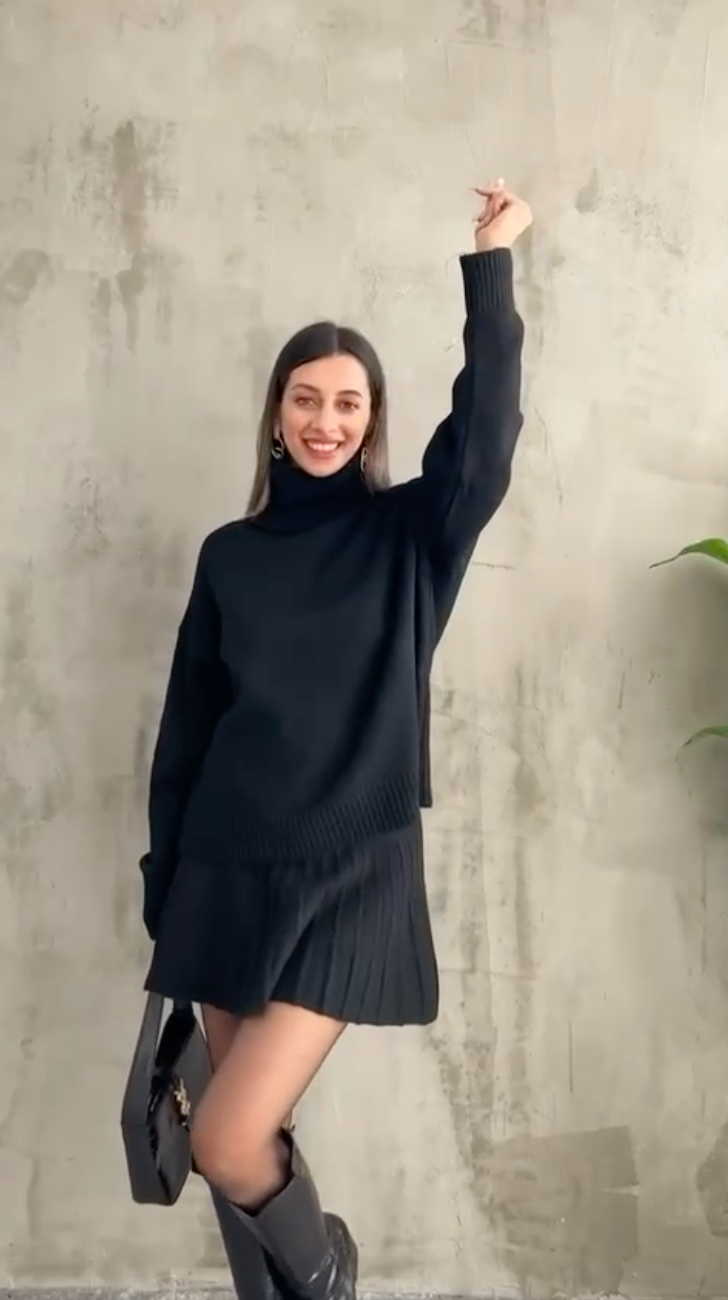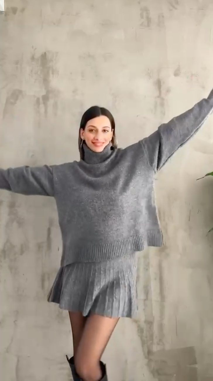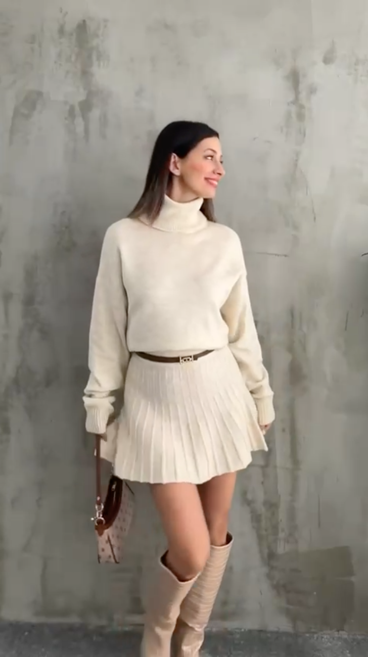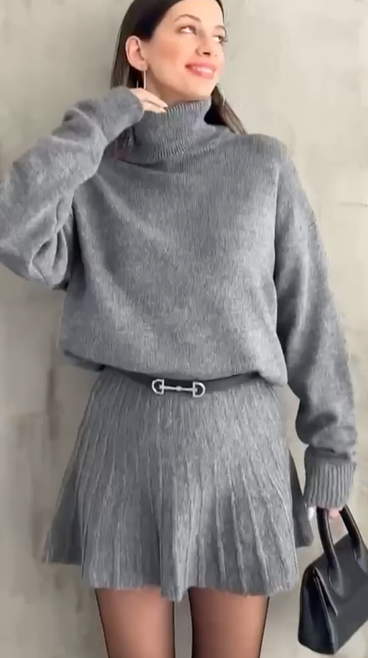 Il Completo Naima unisce eleganza e comfort in un design contemporaneo. Caratterizzato da una gonna dal taglio raffinato e un maglioncino morbido, questo completo versatile si adatta perfettamente a occasioni formali e uscite di stile. I tessuti caldi garantiscono una sensazione avvolgente, mentre la linea alla moda valorizza la silhouette con sobrietà e classe. Una scelta ideale per chi cerca un abbigliamento sofisticato senza rinunciare al comfort.