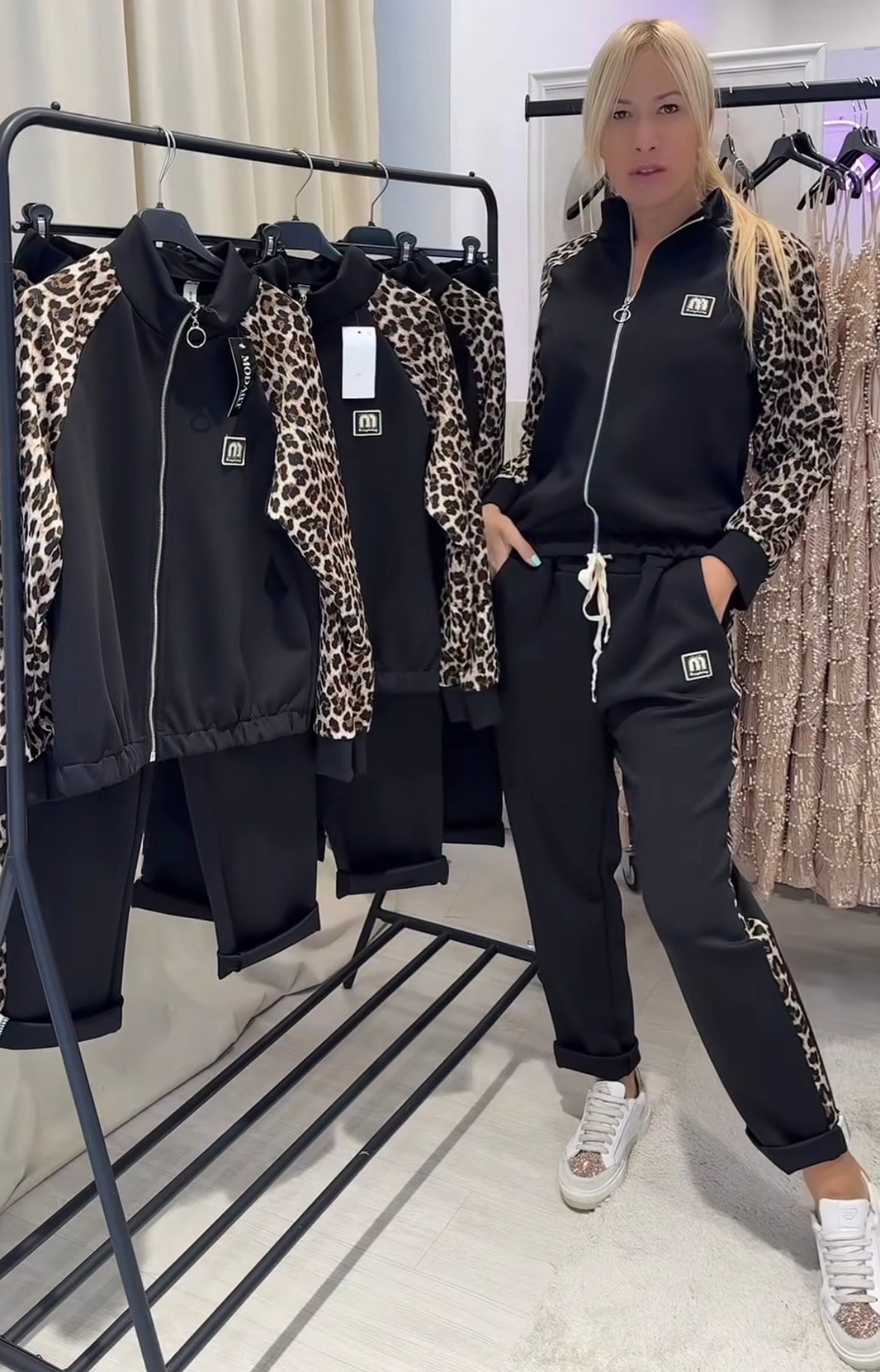Completo tuta in tessuto morbido e confortevole, perfetto per chi ricerca stile e praticità. Il design versatile leopardato aggiunge un tocco di personalità a qualsiasi look, mentre la struttura termica garantisce il calore necessario nelle stagioni più fredde. Ideale per il tempo libero o per outfit casual chic, questa tuta combina eleganza e funzionalità in un'unica soluzione. Un capo essenziale per la guardaroba moderna.