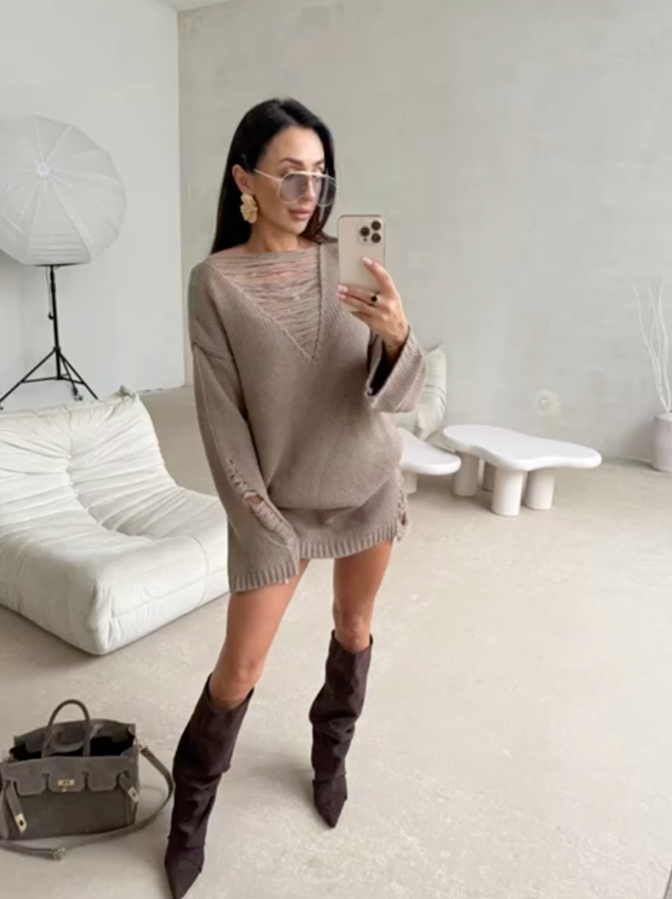 Il vestito maglione unisce stile e comfort in un capo versatile e sofisticato. Realizzato con materiali di alta qualità, garantisce morbidezza e calore, ideale per le stagioni più fresche. Il design elegante e alla moda si adatta perfettamente a contesti sia casual che più formali, offrendo una silhouette raffinata senza rinunciare alla praticità. Un must-have per chi cerca un equilibrio tra tendenza e funzionalità nel proprio guardaroba.